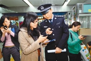 記者在大劇院地鐵站內的宣傳點看到,現(xiàn)場滾動播放典型案例和防范技巧,網警向市民派發(fā)宣傳單,并教市民下載深圳網警推出的手機防詐騙軟件“e警工場”,受到了市民的熱捧,不少市民駐足了解,紛紛表示曾多次收到詐騙電話、信息,并請教網警如何處理。